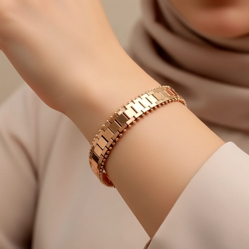 این دستبند برای افرادی که به دنبال جواهراتی با طراحی خاص و مدرن هستند، مناسب است. انتخابی ایدهآل برای تکمیل استایل در مجالس رسمی، مهمانیها و حتی استفاده روزمره.