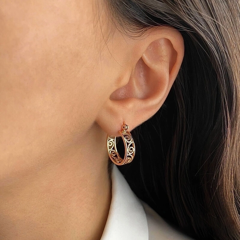 گوشوارههای حلقهای طرح اسلیمی ژوپینگ با طراحی زیبا و منحصربهفرد، گزینهای ایدهآل برای خانمهایی است که به دنبال جواهراتی با استایل هنری و متفاوت هستند. این گوشوارهها از فلز مس با آبکاری طلا ساخته شدهاند که به آنها درخشندگی و دوام بالایی میبخشد. طراحی اسلیمی این گوشوارهها به آنها جلوهای خاص و جذاب میدهد. قفل این گوشوارهها از نوع کلیپسی است که استفاده از آنها را آسان و ایمن میکند.