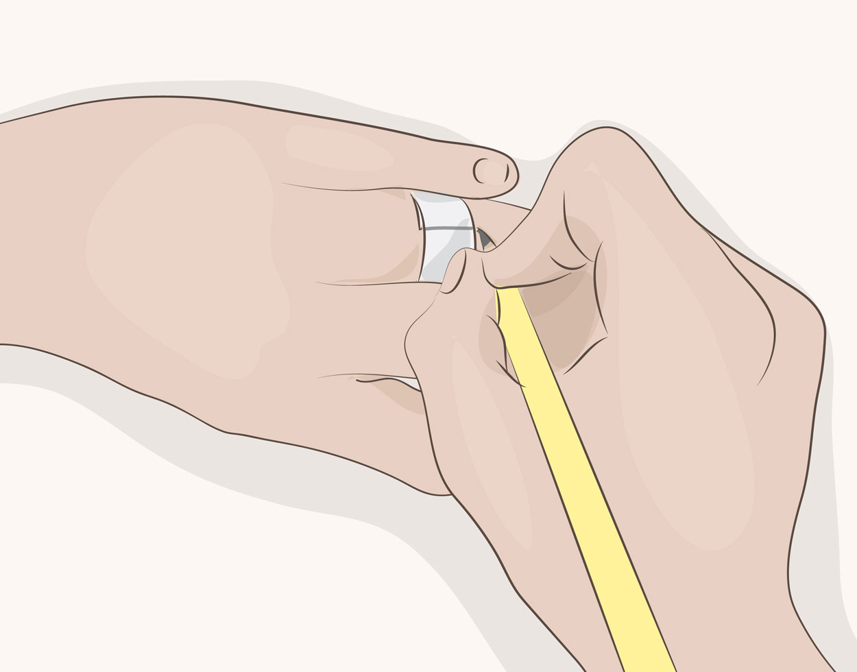 اگر انگشتر مناسب در دسترستون نبود، از این روش استفاده کنید. ولی با حوصله و دقت انجام بدید که اشتباه پیش نیاد. سعی کنید این روش رو در نیمه روز و دمای معتدل انجام بدید که انگشتتون در حالت طبیعی باشه، نه پُف کرده باشه و نه خیلی منقبض شده باشه.