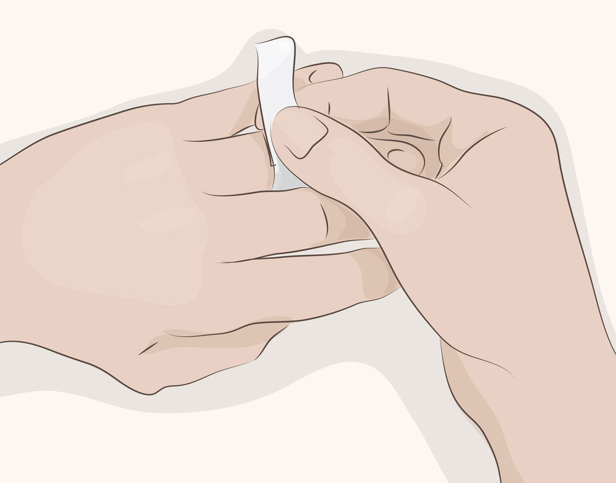 2️⃣ مرحله دوم: نوار کاغذی رو دور انگشتتون بچرخونید، به شکلی که نه خیلی کیپ باشه نه خیلی آزاد. چون انگشتر قراره از روی مفصل انگشت رد بشه، سعی کنید این قسمت رو اندازهگیری کنید تا موقع استفاده به مشکل برنخورید.
