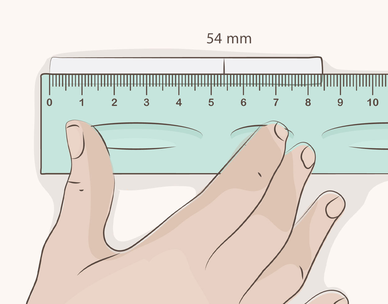 4️⃣ مرحله چهارم: نوار کاغذی علامت زده شده رو با خطکش به دقت اندازهگیری کنید. عدد بدست اومده رو با جدول زیر مقایسه کنید و نزدیکترین عدد به اندازه دور انگشتتون رو انتخاب کنید.